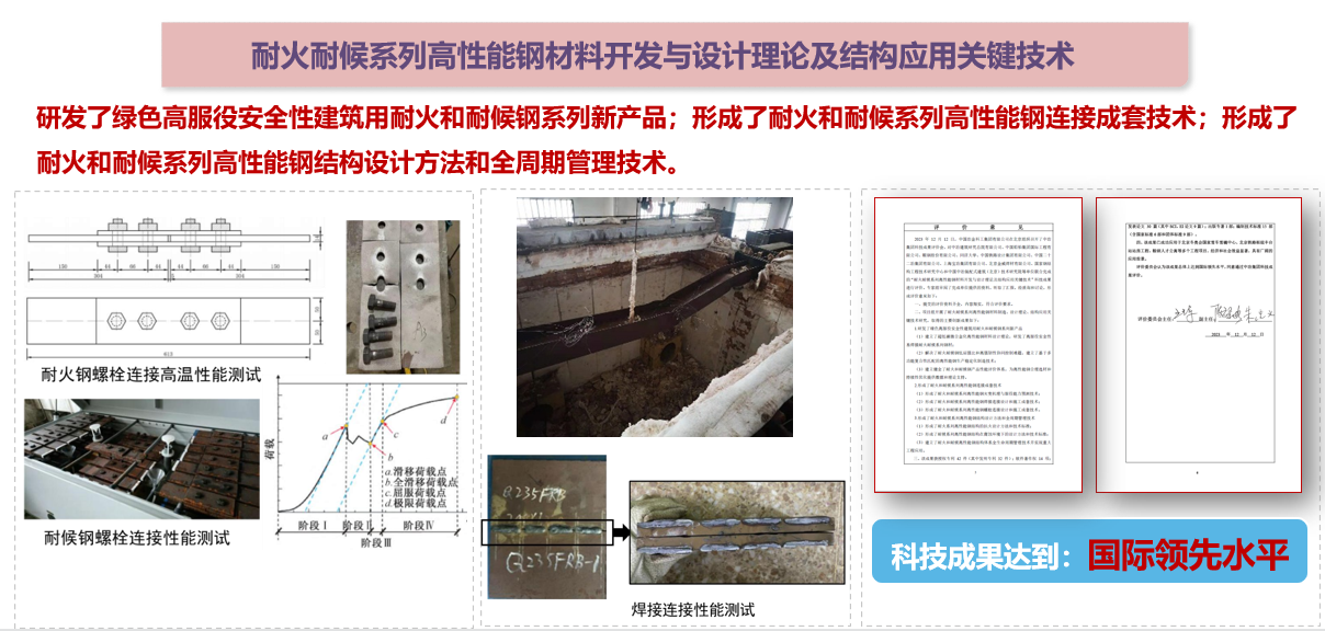 (2)高性能建筑结构钢材应用关键技术:针对各类新型高性能建筑结构钢材,包括高强结构钢、耐火钢、耐候钢、不锈钢、高效截面型钢、纵向变截面钢板、轧制金属复合板、高性能大直径高强耐候索及配套的连接材料,提出了材料、构件、连接节点和结构体系等的性能指标和设计理论及方法,提供面向工程应用的关键技术。